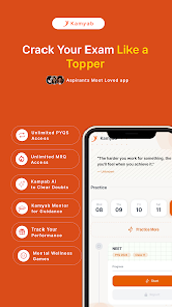 كامياب: تحقيق المستحيل هو تطبيق تعليمي مصمم لمستخدمي أندرويد، يركز على مساعدة الطلاب في التحضير للاختبارات التنافسية مثل NEET و JEE. يقدم التطبيق مجموعة متنوعة من الميزات، بما في ذلك أوراق الممارسة اليومية (DPPs) وأسئلة السنوات السابقة (PYQs) واختيار من الأسئلة المتكررة. يمكن للمستخدمين تصفية الأسئلة حسب الصف والفصل، مما يسمح بتجربة دراسة مخصصة. التطبيق مجاني للاستخدام ويوفر نهجًا شاملاً للتحضير للاختبارات.